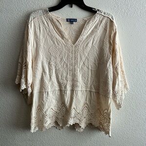 Chic lace blouse with elegant detailing. Perfect for versatile styling.