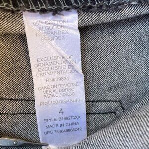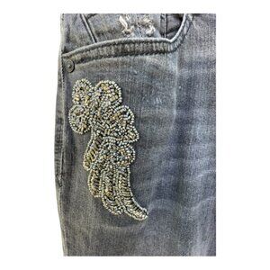 Uniquely detailed jeans that combine casual style with a dash of dazzle. Sparkling beading adorn the area under both pockets, straight-leg cut, made from a comfortable blend of 99% cotton and 1% spandex, ensuring a bit of stretch for a perfect fit. Size 4 In very good preowned condition. No rips stains or tears.