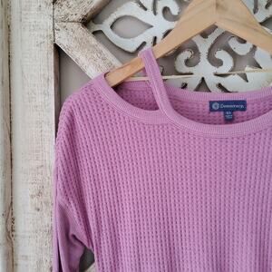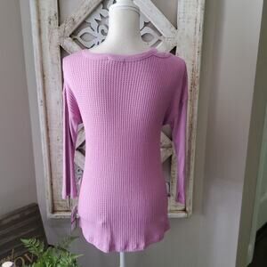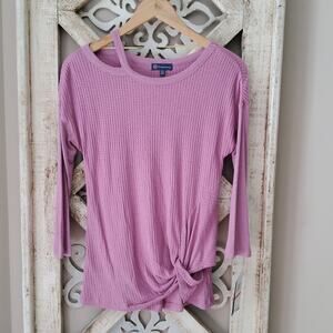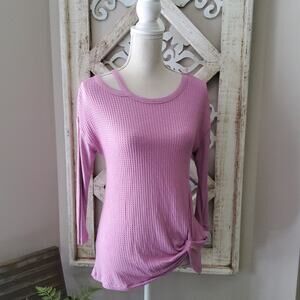 Lilac knot front shoulder cutout waffle knit top by Democracy in a size x-small.