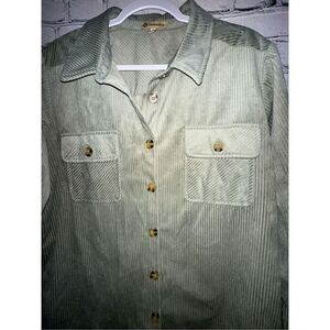 Democracy Women’s Large Long Sleeve Corduroy Long Sleeve Button Down Blouse Sage