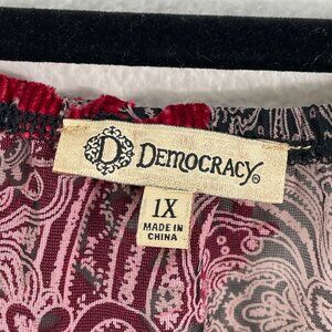 Democracy Womens Plus 1X Off The Shoulder Sheer Crushed Velvet Floral Top Shirt