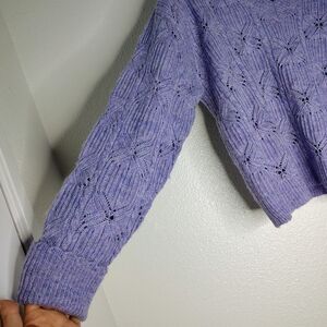Chic lavender V-neck sweater by Democracy. Features intricate knit design. Ideal for casual wear.