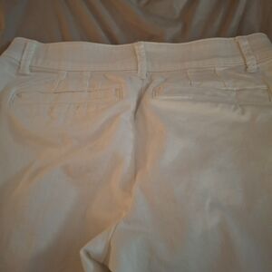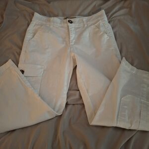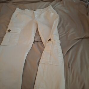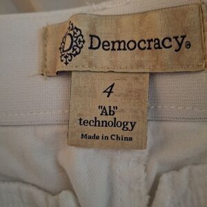 Democracy women's white denim cropped cargo jeans. Size 4 with Ab technology. waist side to side measures 14-1/2 inches. Length 34 inches. inseam 24 inches.