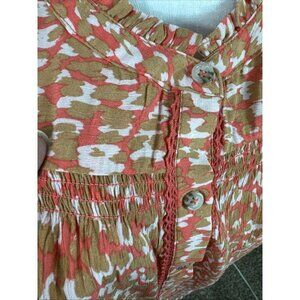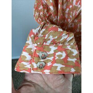 Democracy Women's XL 3/4 Puff Sleeve Blouse Orange Beige Abstract NWT