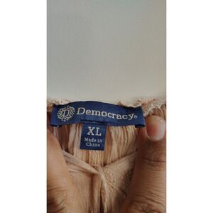 Democracy Women's XL Beige Floral Embroidered Long Sleeve V Neck