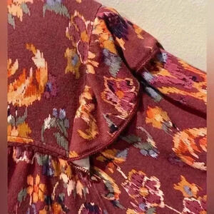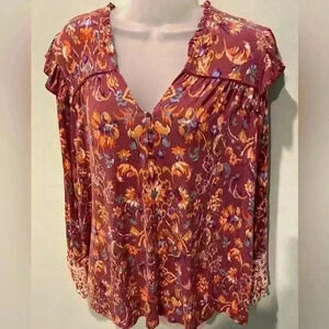 Democracy XXL Long Sleeve Boho Floral Blouse Ruffle Red Fall Thanksgiving