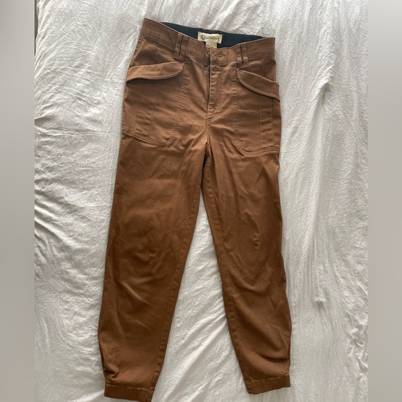 Cargo pants with an elastic waist, pockets. Never worn, size 2 but run big (size 4).