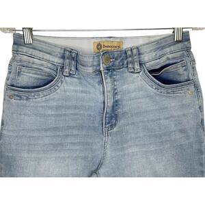 Democracy with Ab Technology Light Wash Cropped Scalloped Embroidered Hem Jeans. Slimming, tummy tuck, lifting, stretch. Size 8. Measurements taken flat:
