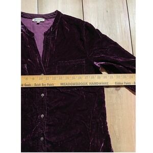 Democracy women's velvet button down shirt/blouse. Burgundy. Rayon blend. Small