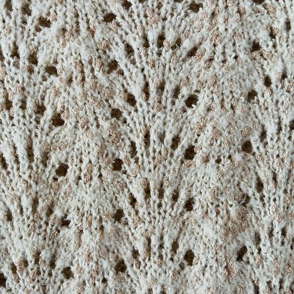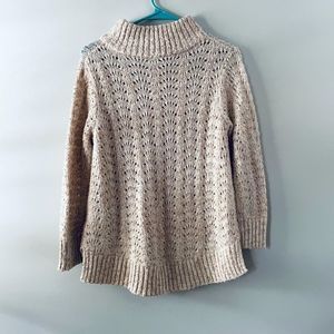 Size XS. Beautiful tan (with gold sparkle through out) sweater. High neck line, gently used
