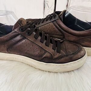 Democrata Brown Worn Distressed Brazilian Leather Lace up Mens Sneakers - Size 8