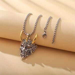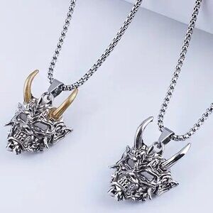 Demon Devil Mask Pendant Necklace Stainless Samuri Goth Punk Edgy Rock Heavy Chain