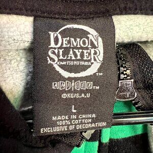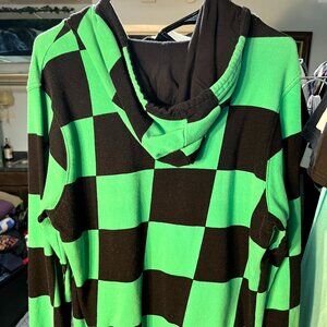 Demon Slayer 100% Cotton Green Black Checkered Full-Zip Jacket Hoodie SZ Lrg