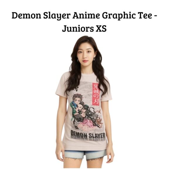 demon slayer tee, anime graphic shirt, anime streetwear, juniors graphic tee, casual anime top, manga shirt, otaku style