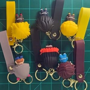 Set of Demon Slayer character keychains with colorful designs. Includes characters with vibrant details and attached tags.