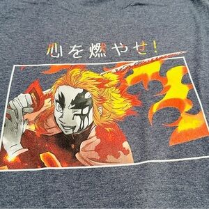 Demon Slayer Rengoku Set Your Heart Ablaze Heather Grey Graphic T-shirt - GUC - size L