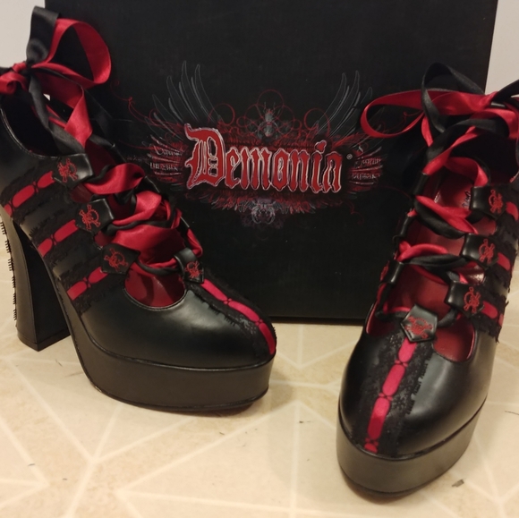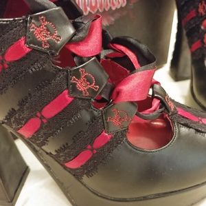Black and red lace up Lolita style platform shoes. Heel size is 5 inches. Brand new with box, never worn.