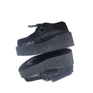 Stylish black platform loafers. Textured design. Lace-up closure. Perfect for a bold look.