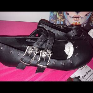 Ballet Flat Double Strap Mary Jane with Skull Buckle Eyelet Detailing