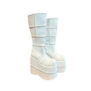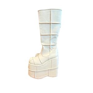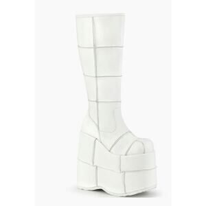 Demonia New Stack 301 White Vegan Leather Platform Boots Over The Calf Men's 6