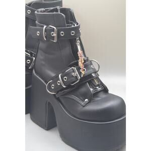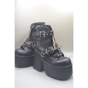 Demonia Platform Black Boots Belt Straps Zipper NWOT SZ 8