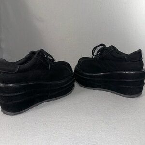 Demonia Platform Sneakers Tempo-08 Vegan Suede Goth Punk Rave Black 6-6.5 -READ