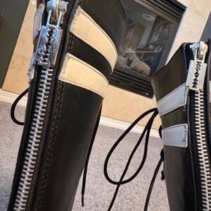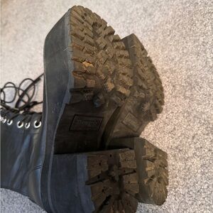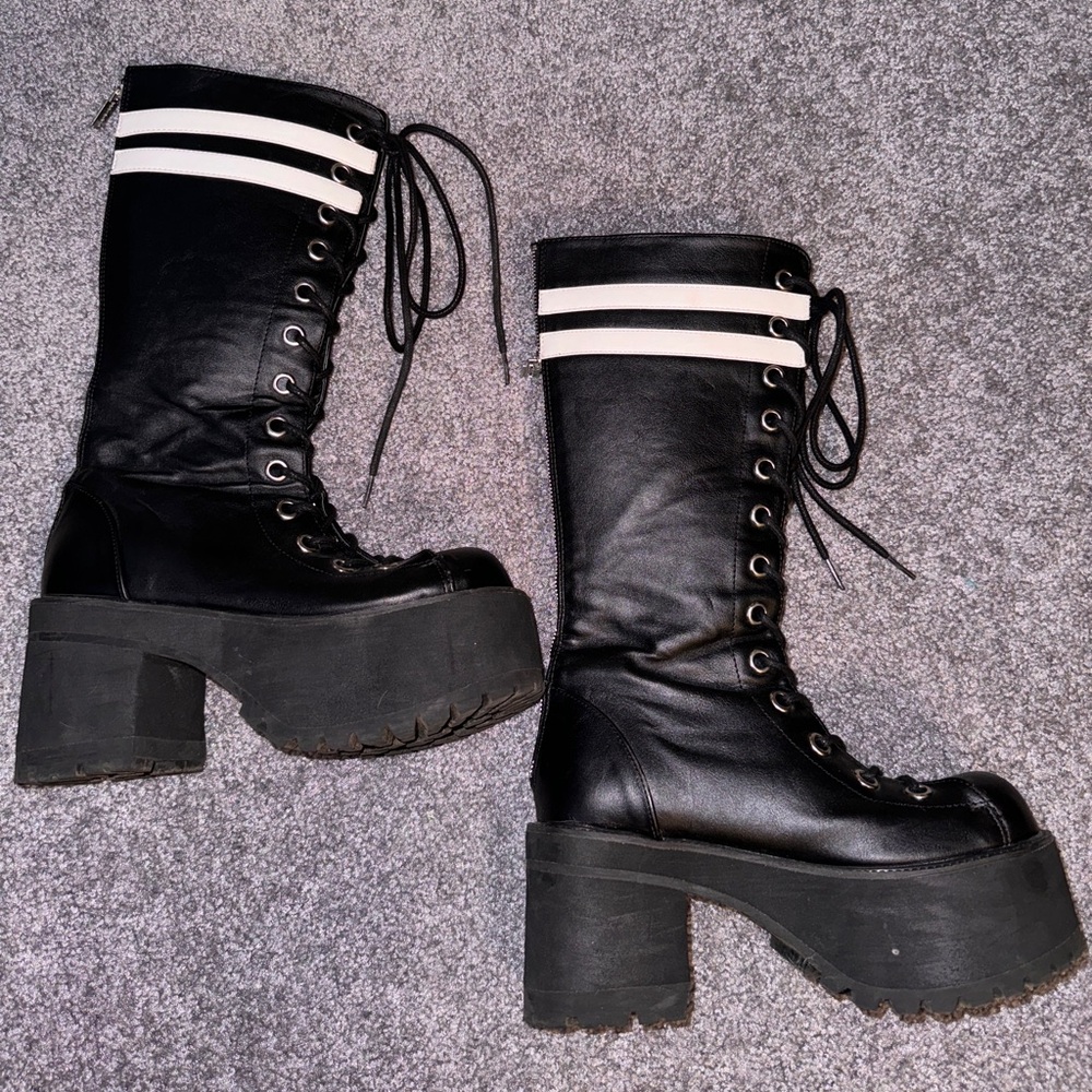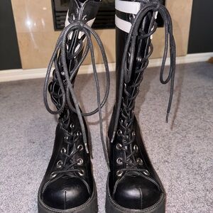 Gently used. Demonia Black Platform Lace-Up Boot. Zip up closure in back with lace up front. Zipper has razor blade accent. Size 8.