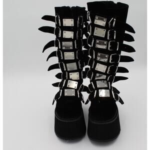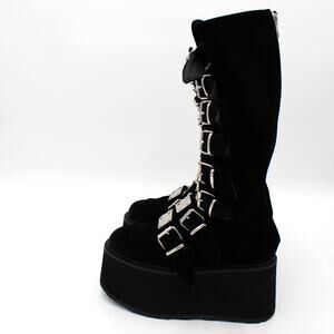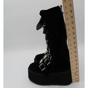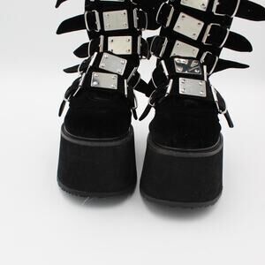 Demonia Trinity Platform Tall Boots Womens 8 Black Velvet Gothic Punk Buckle