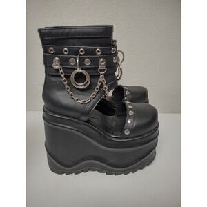 Demonia Wave 22 6” Platform Wedge Ankle Cutout Boot Goth Chain Halloween Sz 6