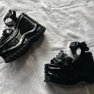 These shows are baddie shoes ! Love the sm they are in good condition very easy to walk in and thick they have a little bat on the shoe of you zoom in cute detailed