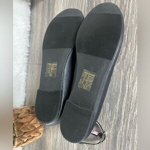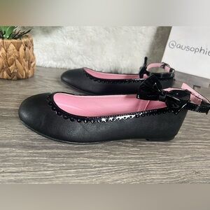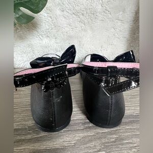 Demonia star-27 ankle strap flat with studded bow and scalloped detail. Size 5