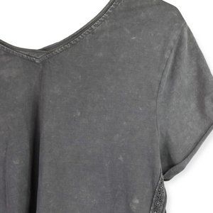 Demoracy Blouse M Womens Gray Distressed Sharkbite Hem Cotton Blend Short Sleeve
