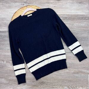 Demylee 100% cashmere navy and white stripe crewneck sweater