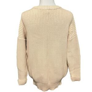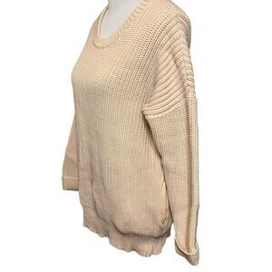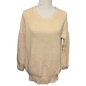 Excellent condition. L. Ivory cotton blend sweater. Chunky knit. Dropped shoulders. Side seam pockets. Classic fisherman style. This is a substantial sweater. Many of these sweaters are sold at Anthropologie