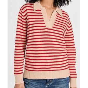Demylee Lucian Red Stripe V Neck Sweater size L. Merino wool. MSRP $310. In excellent pre-owned condition. Little to no visible wear, as pictured.