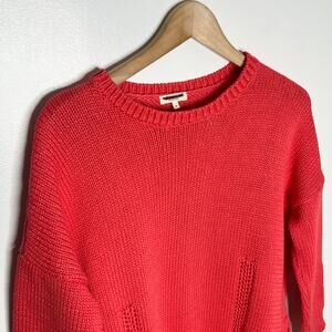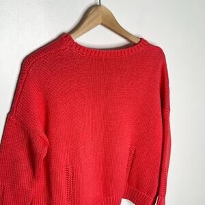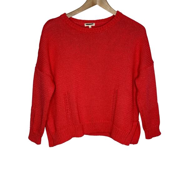 Demylee New York Pullover Sweater Womens Medium Coral 3/4 Sleeve Cropped Cotton