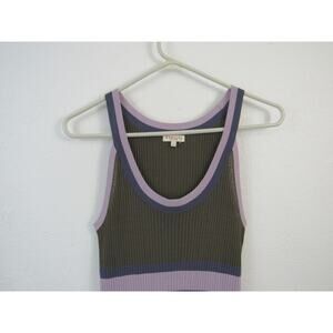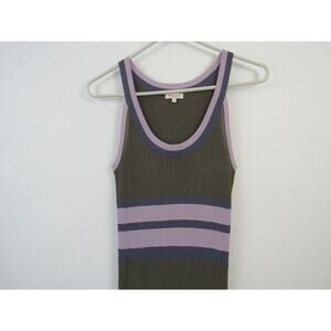 Demylee Small Ribbed Knit Tank Bodycon Dress Olive Green Purple Stripes