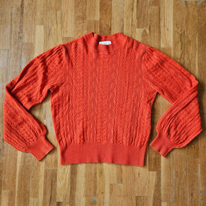 Demylee x J. Crew Sweater M Orange Wool Cozy Cable Knit Quiet Luxury Academia
