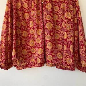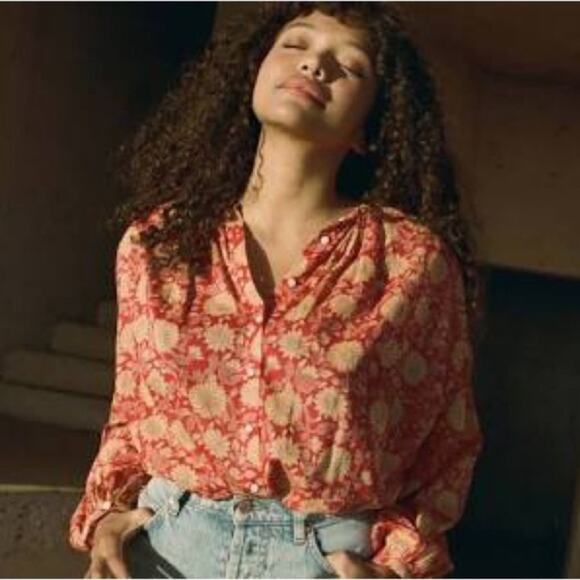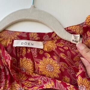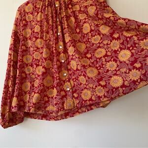 Dôen Jane Blouse in Desert Blooms Block Print Organic Cotton Size XXS Oversized
