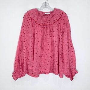 Dôen Jemma Blouse (Sz M) Long Sleeve Ruffle Collar Tea Rose Swiss Dot