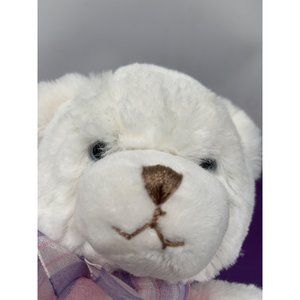 Dena NO 1784 First Main White Bear Plush Stuffed Animal Purple Pink Striped Ribb