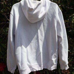 Stand in solidarity with Alaskans in keeping Denali named Denali with this hoodie! White kangaroo pocket hoodie with a photo of Denali's peak and PRMNT Peak in a red text box. This is showing some minor wear, the photo isn't as vibrant as it was when first purchased, but not faded much, and the text is starting to crack a little see photos, but no peeling or large defects. Minor pilling mostly noticed in the hood. Could be managed with a clothes shaver easily. Listed as Men's small, but would just be slightly oversized fit. Lots of miles left in this hoodie. Snatch it up and wear it on your summer adventures or a trip to Alaska or just to show your support.