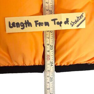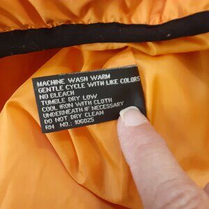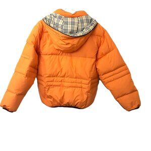 The Denali Woman's Puffer Jacket in size medium features a full zip closure and polyester outer shell with a polyester lining. It is designed with a solid orange color with plaid design in hood, making it suitable for travel, casual, and workwear occasions. The jacket has a mid-length and long sleeves, providing insulation with down feathers for the winter and fall seasons. With accents like a full zip, it offers a regular fit and is machine washable. The Denali jacket combines a classic yet trendy style, perfect for outdoor activities or everyday wear.