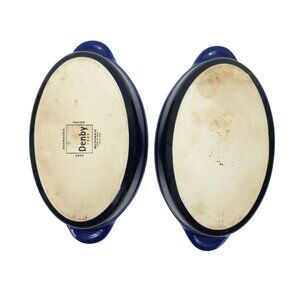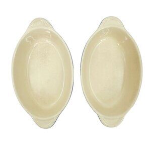Denby Au Gratin Baking Dishes 2 Individual Oval Bakers 9x5 Blue Cream Stoneware