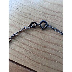 Minor tarnishing and a small chip on the back of the pendant. Chain length = approximately 20 inches. Pendant dimensions = approximately 1.5 x 1 inches.