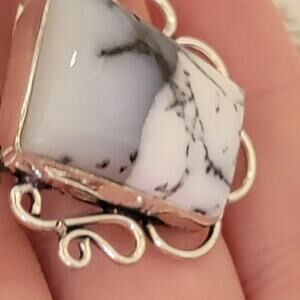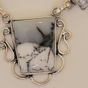Tags: dendritic opal, silver necklace, opal jewelry, statement necklace, handmade jewelry, sterling silver, gemstone necklace, unique necklace, gift for her, black white opal, boho jewelry, natural opal, 20 inch necklace