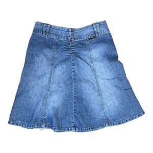 Y2K Denim Skirt Brand: Rewind, Size 3 slight flare, low rise waist 30 in hip 36 in length 20.5 in #y2k #mcbling L1