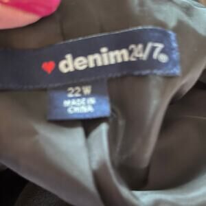 In excellent preowned condition with no flaws: no tears, wear, stains or smell. Comes from smoke free home. Size 22W. Measurements laid flat: pit to pit 23”; waist 24”; hip 25”; shoulder to hem 32”.