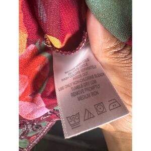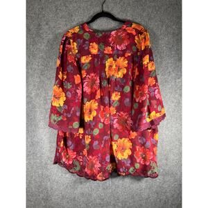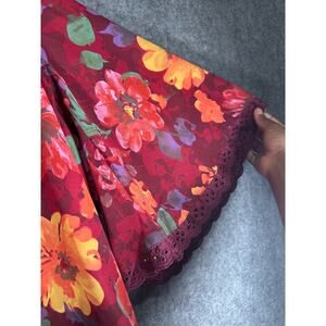 Denim 24/7 Blouse Women 16W Red Button Front Short Sleeve Embroidered Floral