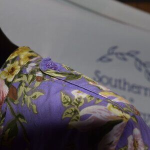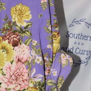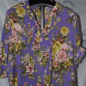 Denim 24/7 Floral, Button Front Blouse, Purple Background, size 32W